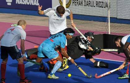 भारत बेशक अजलान शाह के फाइनल में पहुंच नहीं सका लेकिन तीसरे स्थान और कांस्य पदक के लिए खेले गए मुकाबले में उसने ब्रिटेन को 3-1 से रौंदकर पदक अपने नाम कर लिया है।मैच के पहले हाफ में काफी देर तक दोनों टीम कुछ खास नहीं कर सकीं लेकिन ब्रिटेन ने बेहतरीन आक्रामक खेल दिखाते हुए पहले हाफ के आखिरी क्षणों में मिले पेनल्टी कार्नर का पूरा फायदा उठाया और 30वें मिनट में एश्ले जैक्सन ने उस पेनल्टी कार्नर को गोल में तब्दील कर अपनी टीम को 1-0 की बढ़त दिला दी। दूसरे हाफ में भारत बढि़या रणनीति के साथ उतरा और इस बार शिवेंद्र ने दूसरे हाफ के कुछ ही मिनट के अंदर भारत को बराबरी पर लाकर खड़ा कर दिया। इस गोल के बाद भारत ने पीछे मुड़कर नहीं देखा। 53वें मिनट में संदीप ने पेनल्टी कार्नर पर एक बार फिर अपना बेहतरीन ड्रैग फ्लिक का मुजायरा किया और भारत को 2-1 की बढ़त दिलाई जबकि मैच के आखिरी क्षणों तक ब्रिटेन कीतमाम कोशिशों को रोकने के बाद 69वें मिनट में भारत को एक और सफलता हाथ लगी। इस बार एस के उथप्पा ने अपना कमाल दिखाया और भारत को 3-1 से जीत मिली। जाहिर तौर पर भारतीय फैंस को टूर्नामेंट में अपनी टीम को इससे कहीं ज्यादा उम्मीदें थीं लेकिन ब्रिटेन जैसी मजबूत टीम को इतने शानदार अंदाज में हराने के बाद टीम का मनोबल तो जरूर ऊंचा हुआ होगा जबकि फैंस को राहत मिली होगी कि उनकी टीम टूर्नामेंट में खाली हाथ नहीं रही।