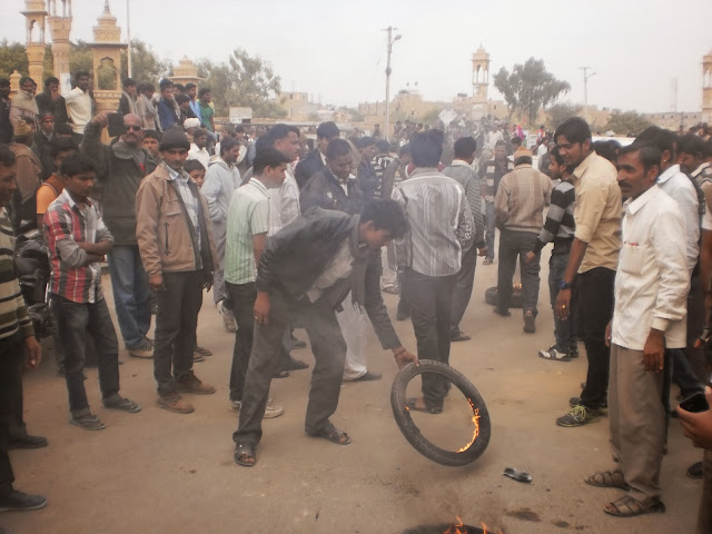 गड़ीसर चौराहे पर प्रदर्शन, रास्ता जाम